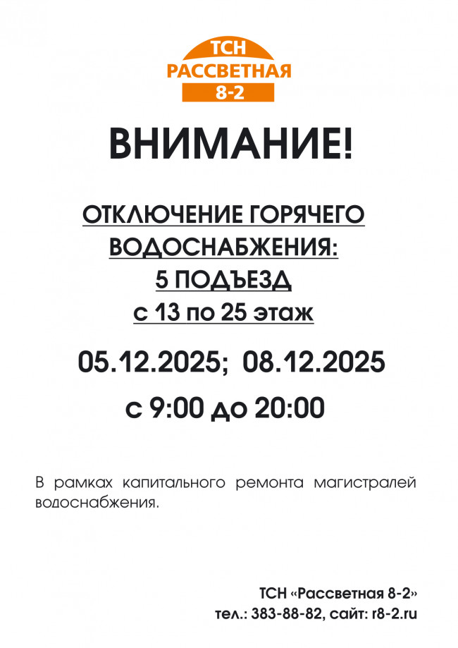 Внимание! Отключение ГВС в 5-м подъезде!