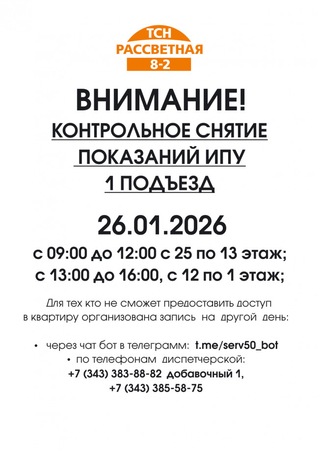 26.01.2026 КОНТРОЛЬНОЕ СНЯТИЕ ПОКАЗАНИЙ ИПУ 1 ПОДЪЕЗД